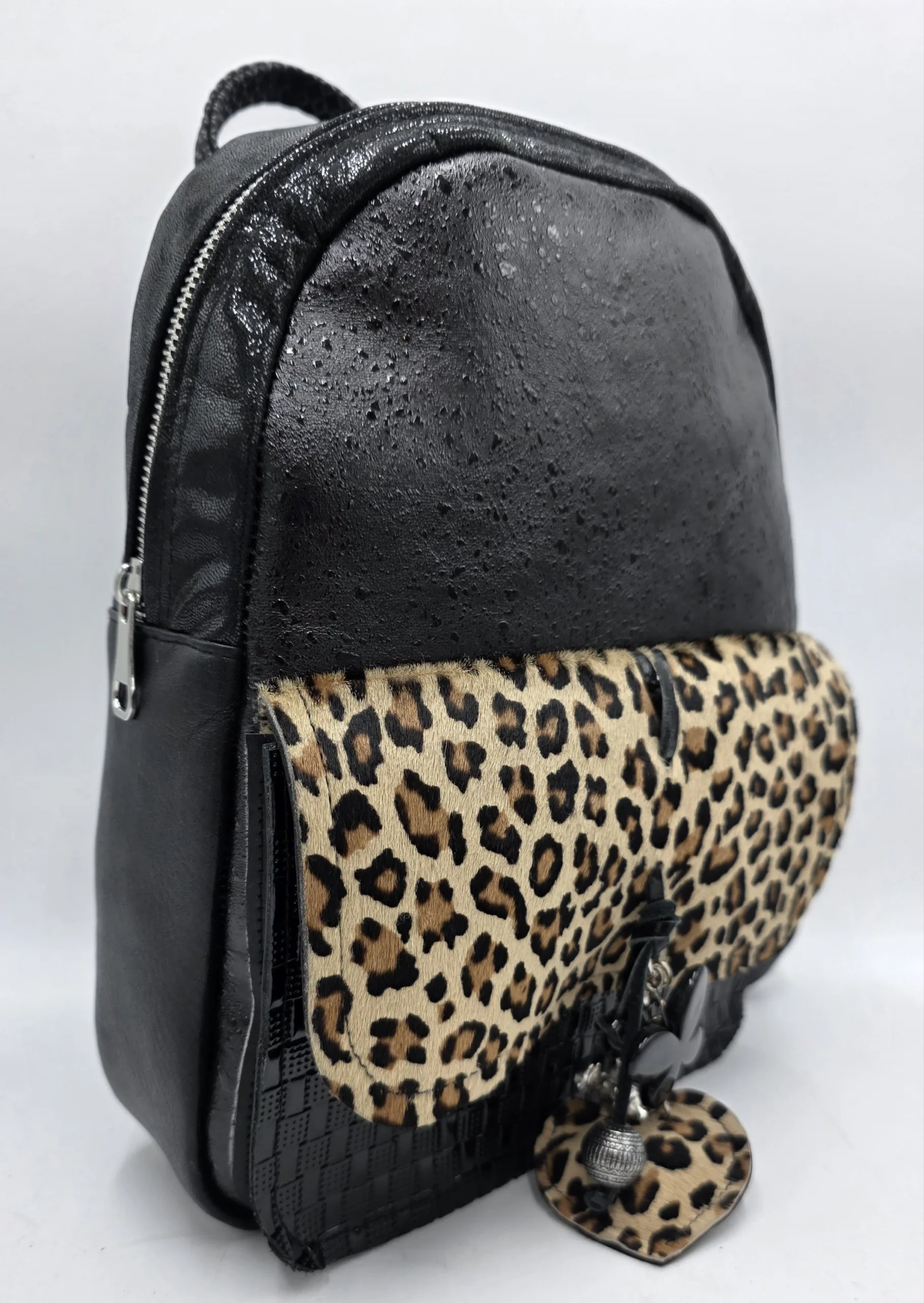 Раница от естествена кожа ръчна изработка с една преграда с преден джоб с капак, заден външен джоб с цип, вътрешен джоб с цип и допълнителен джоб за телефон, дръжки 95см, ширина 25см, ширина 30см, дъно 24см/10см