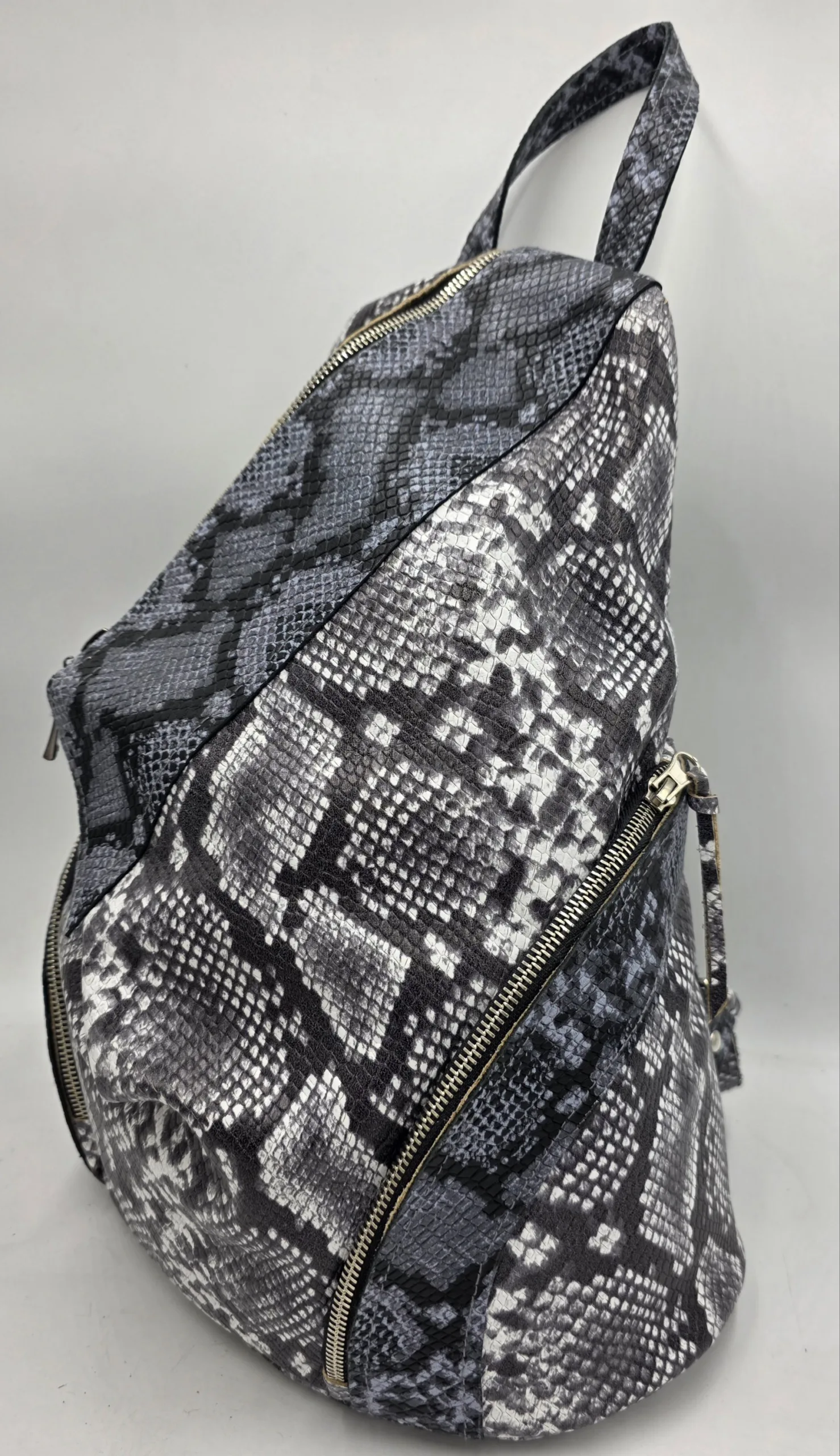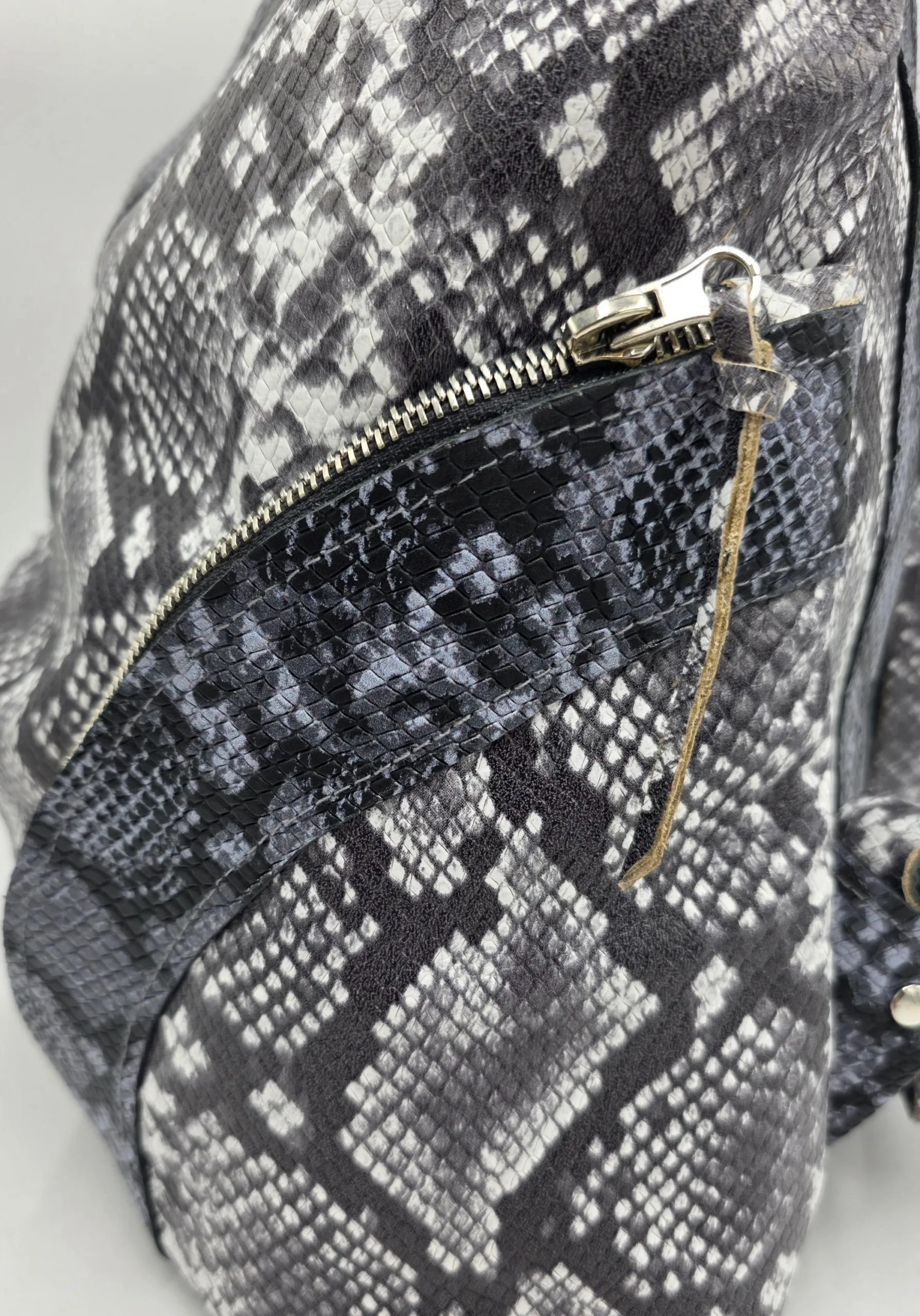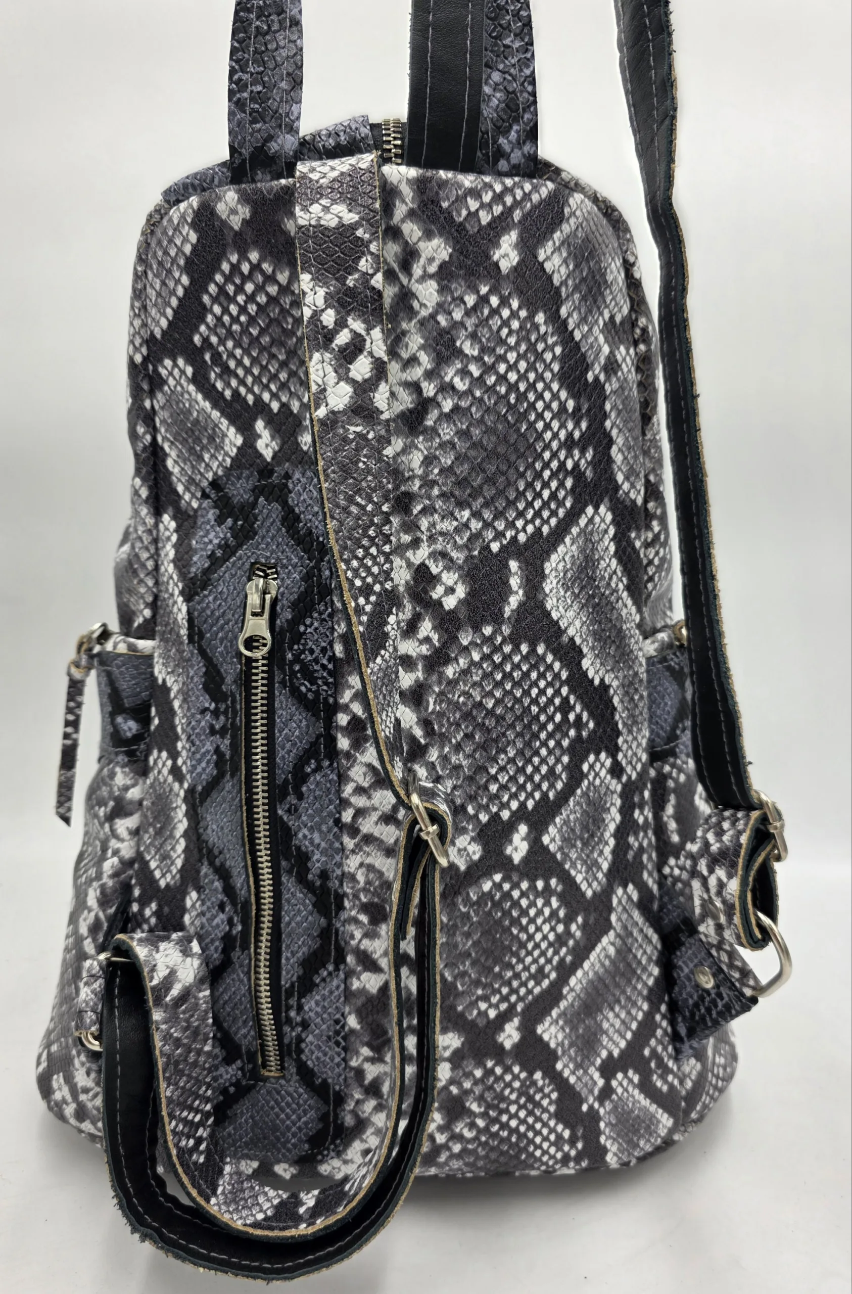 Начало Чанти от Естествена Кожа Раница от естествена кожа в сив змийски принт