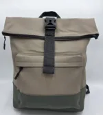 Раница от гумиран непромокаем текстил с непромокаеми ципове,с капак, два външни джоба с цип, вътрешен джоб с цип и подсилена преграда за компютър.Ширина 35см, височина 40см,дъно 29см/13см .