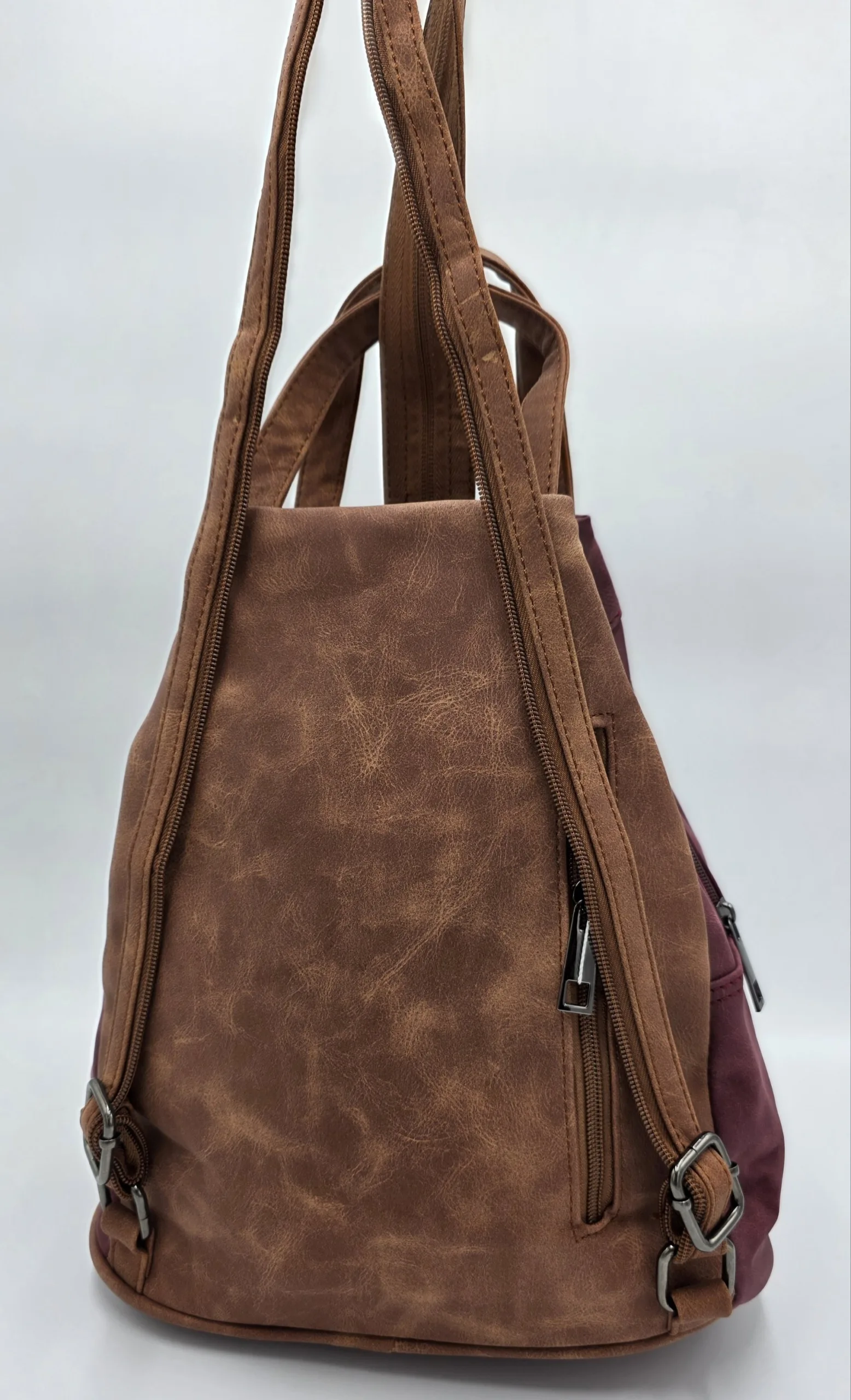 Начало Чанти от Еко Кожа Раница Раница от еко набук в бордо и кафяво