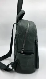 Раница от еко кожа с три предни джоба с цип, два странични, заден външен с цип, вътрешен джоб с цип и допълнителни джобове за телефон, удобни текстилни презрамки, височина 33см, ширина 29см,дъно 30см/13см