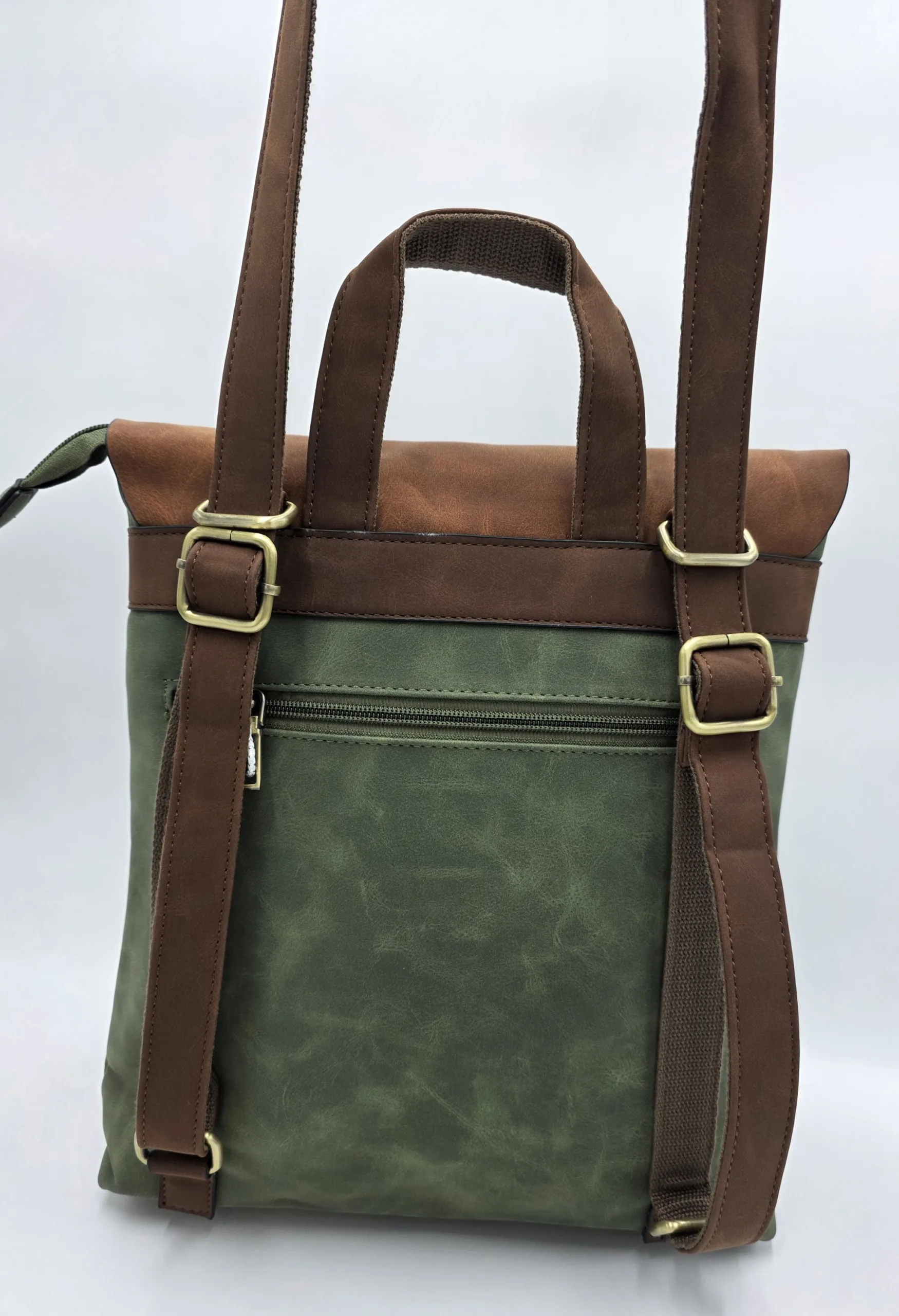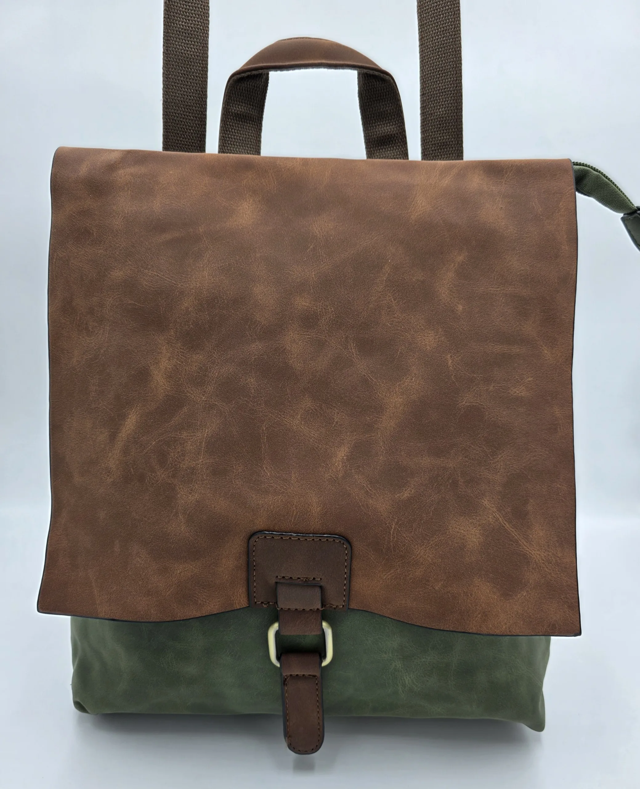 Начало Чанти от Еко Кожа Раница Раница от еко кожа в зелено и кафяво
